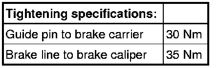 Work procedure applies only for replacing or when performing subsequent service work on brake caliper.