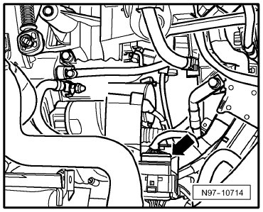 14-Pin Connector -T14b-, black, in engine compartment, near starter -Arrow-