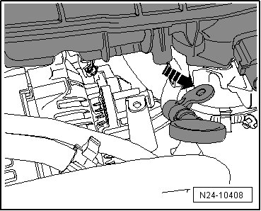 - Press the oil dipstick tube down and to the right - arrow -.