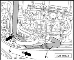 - Remove pipe - A - and hose - B - - arrows -.