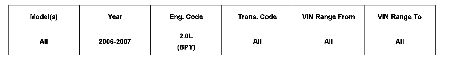 This Technical Bulletin addresses the following Diagnostic Trouble Code (DTC) on all 2006 - 2007 vehicles equipped with a 2.0L TFSI engine.