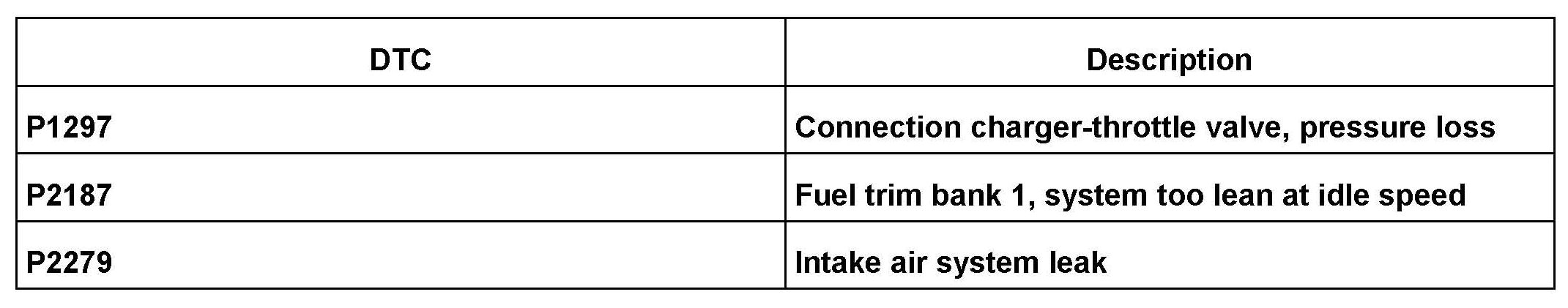 MIL ON DTCs P1297, P2187 or P2279 are Stored in ECM Fault Memory, Possible Oil Leak