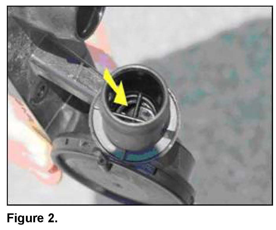 On earlier version crankcase ventilation systems, the guide pin of the check valve in the intake manifold side of the valve (Figure