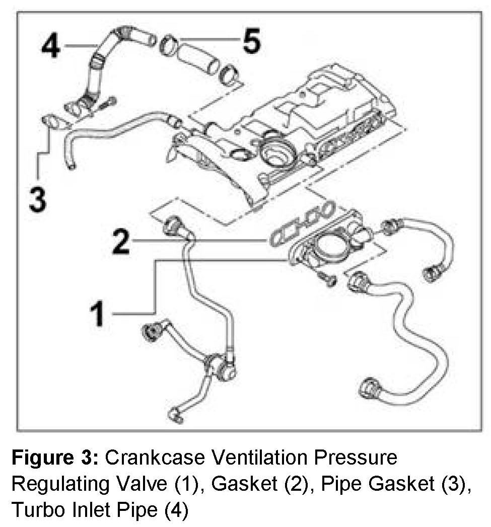 ^ Remove crankcase ventilation pressure regulating valve (Figure 3, number 1) and check part number.
