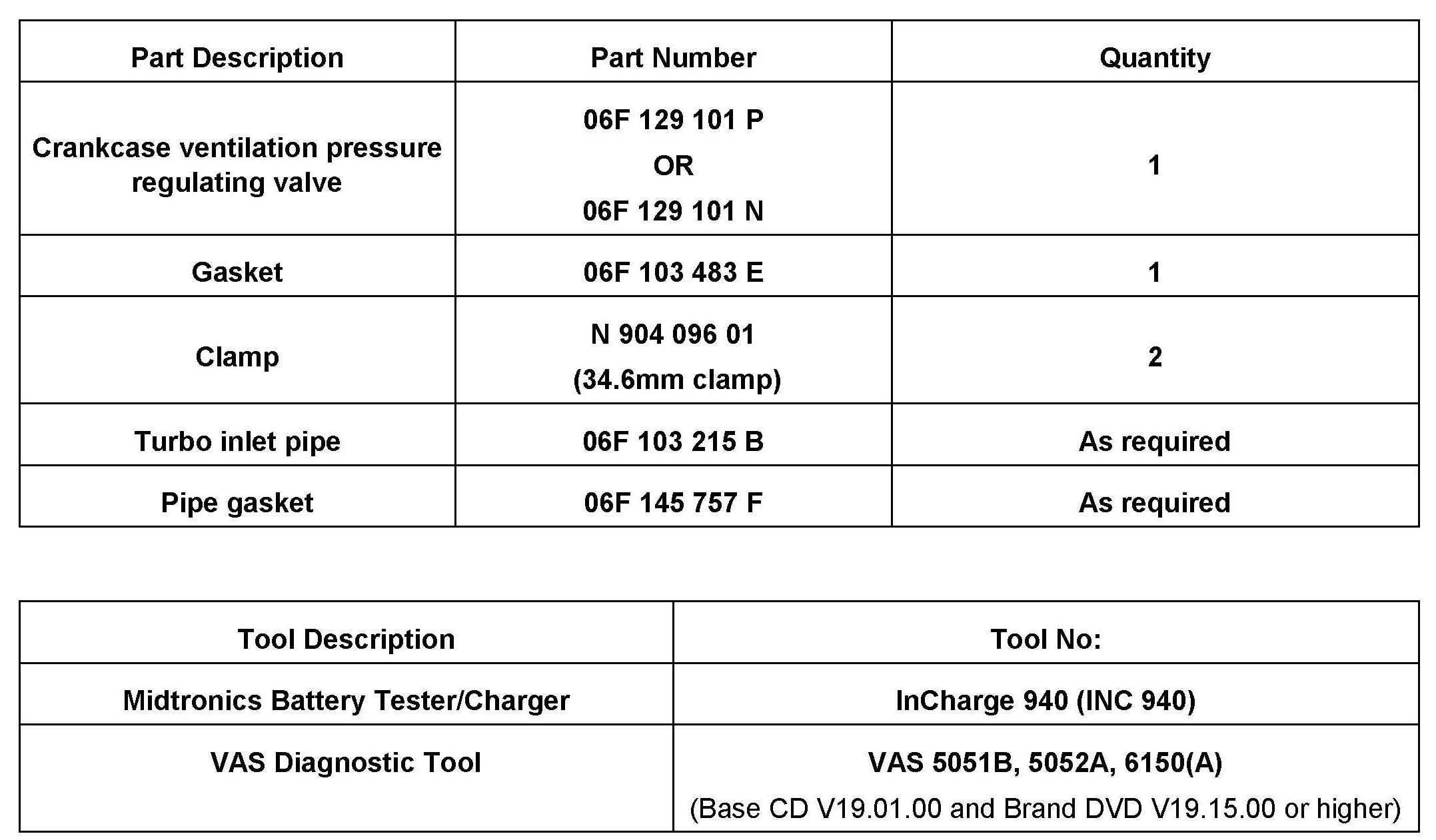 ^ Replace crankcase ventilation pressure regulating valve according to table, replace gasket (06F103483E).