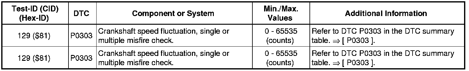 Test-ID 162 ($A2): Misfire Cylinder 1 Data