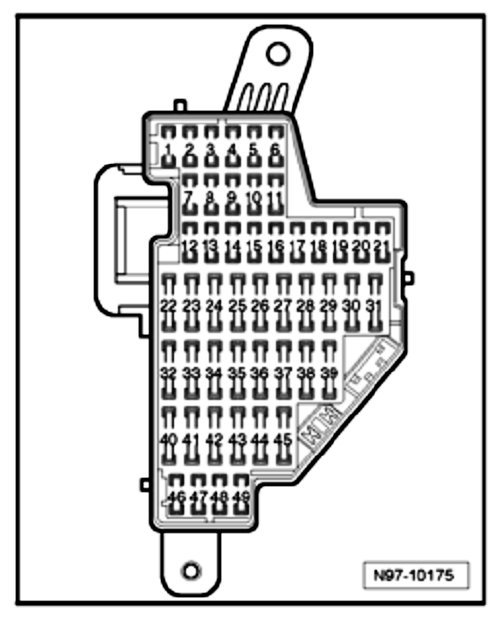 For reasons of safety, if the battery has not been disconnected, Fuse 27 -SD27- must be removed from fuse holder in instrument panel on left side before opening fuel supply system, as the FP is activated by the drivers door contact switch.