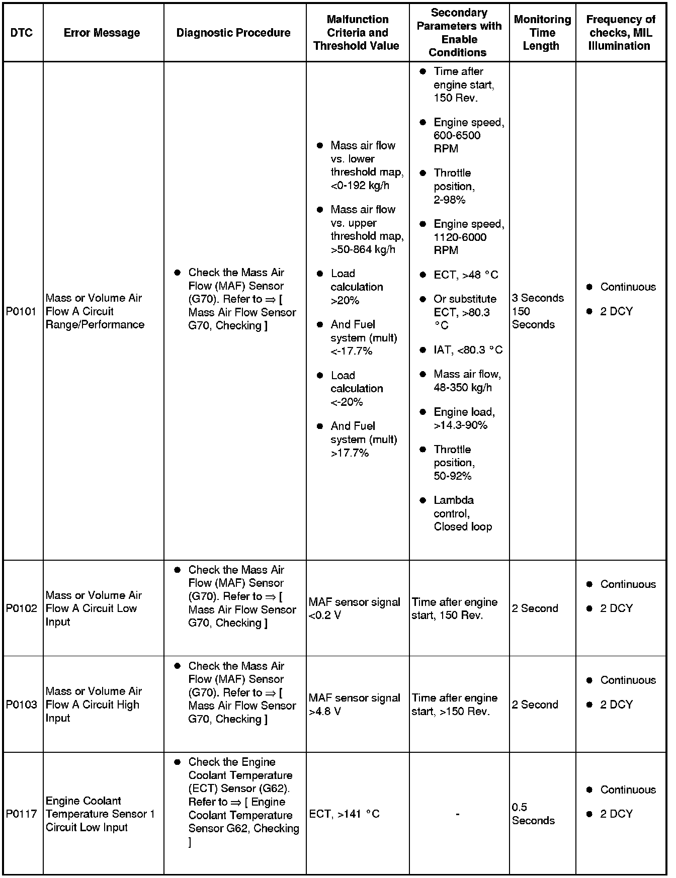 A L L Diagnostic Trouble Codes ( DTC )