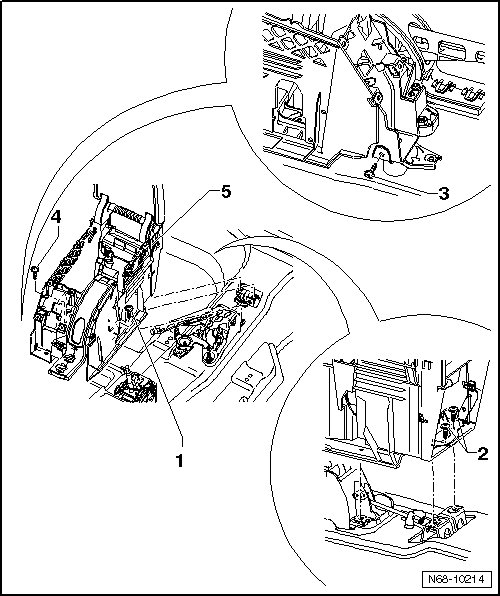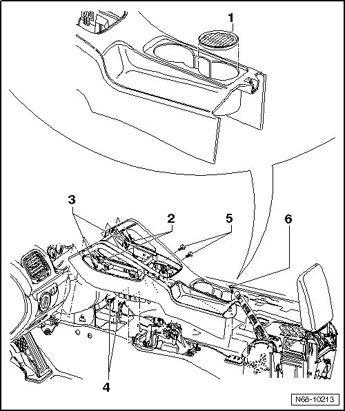 - Open beverage holder - 1 - and remove two bolts - 2 - (1.5 Nm).