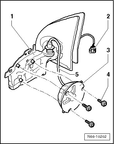 - Remove adjusting unit with motor - 3 - forward and guide wiring harness - 5 - out of mirror - 1 -.
