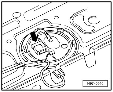 Below rear seat, right, on fuel delivery unit -Arrow-