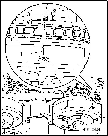 - The distance between the markings on the camshaft adjuster must be exactly 16 rollers of camshaft timing chain.