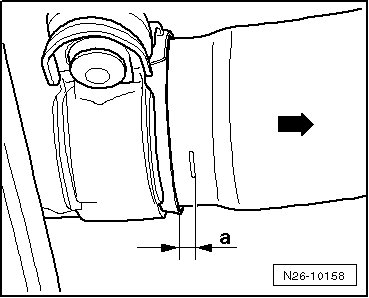 - Align the clamping sleeve on the front exhaust pipe, allowing for dimension - a -. - Arrow - indicates direction of travel. Dimension - a - = 5 mm.