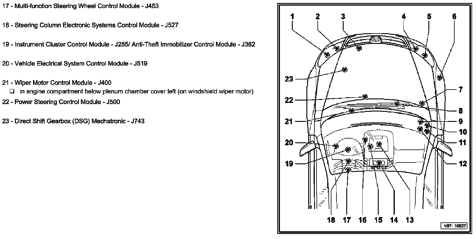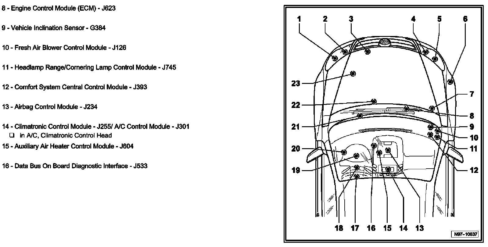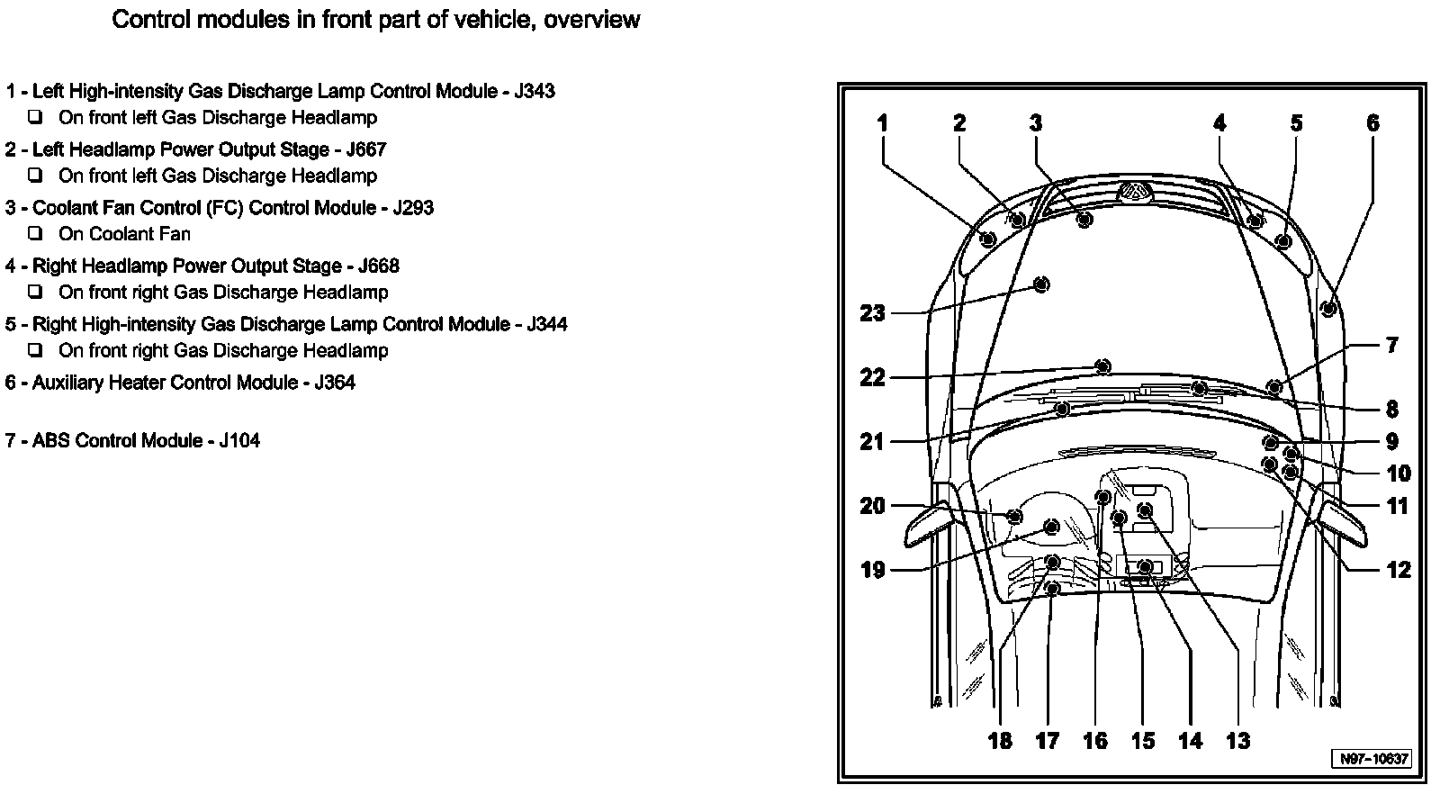 Control Modules In Front Part Of Vehicle, Overview (Part 1):