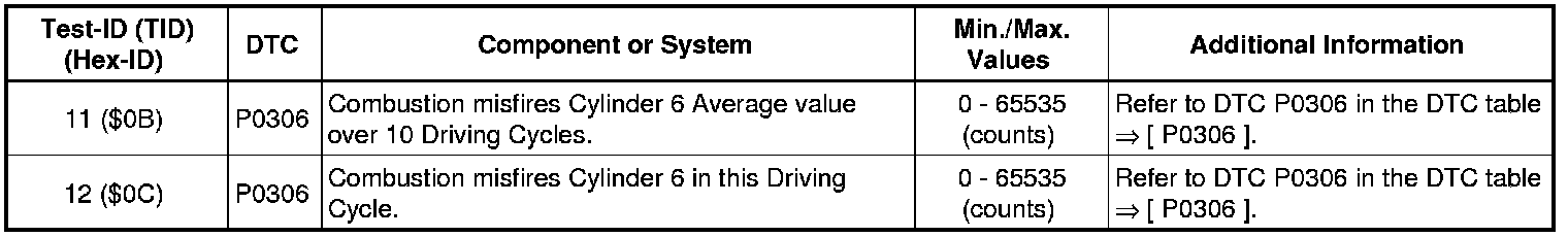 Test-ID 167 ($A7): Misfire Cylinder 6 Data