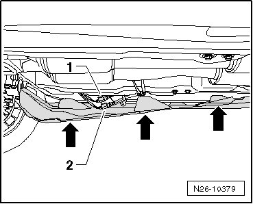 - Remove the front underbody crossmember by removing nuts - 1 and 2 -.
