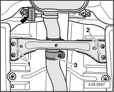 - If present, remove the bracket from the front exhaust pipe - arrow -.