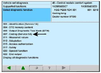 11. Select option "007 - Coding (Service 1A)", -arrow-.