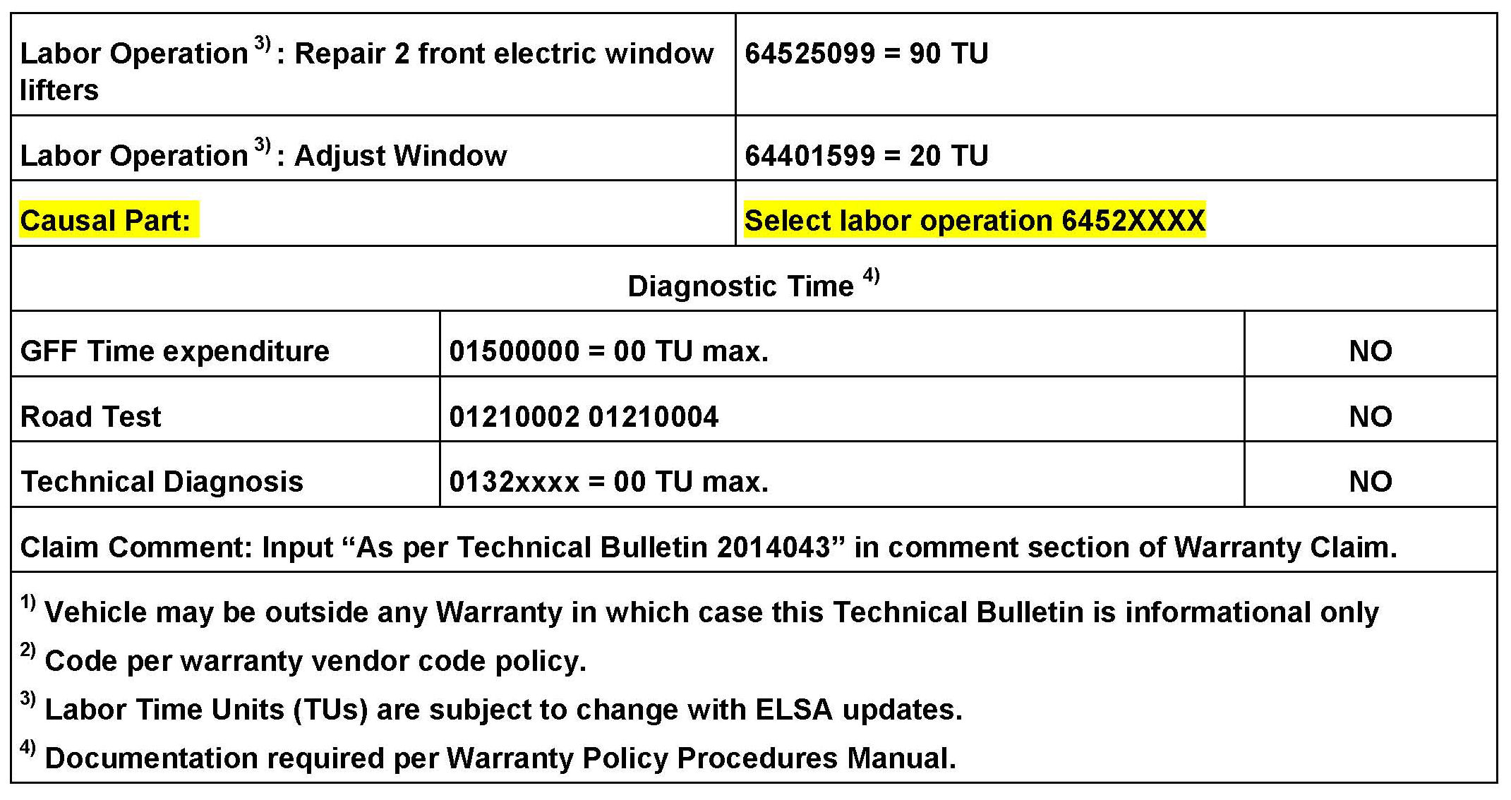^ Adjust window(s), see Repair Manual, Group 64 Glass, Window Regulators.