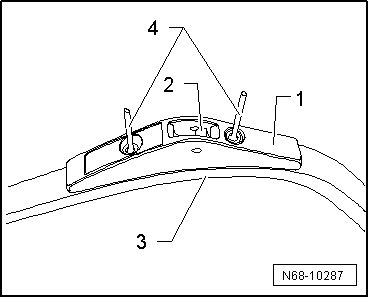 - Position the mount - 1 - with the installed spring - 2 - on the profile bracket - 3 -. The symbol on the mount must face up.