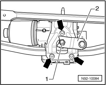- Remove mounting bolts - arrows - and remove wiper motor with control module out of wiper frame.