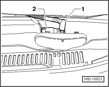 - Disconnect hose - 1 - from spray nozzle and disconnect harness connector - 2 -.