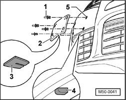NOTE: The correct license plate holder - 2 - position is achieved by placing the guide - 3 - on the holder in the grille recess - 4 -.