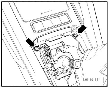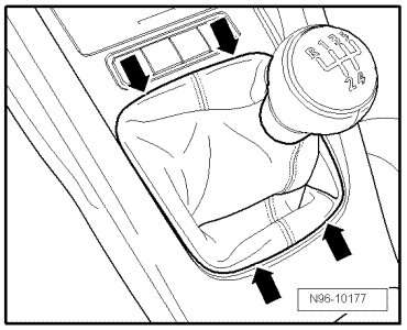 - Carefully pry off shift boot from center console - arrows -.