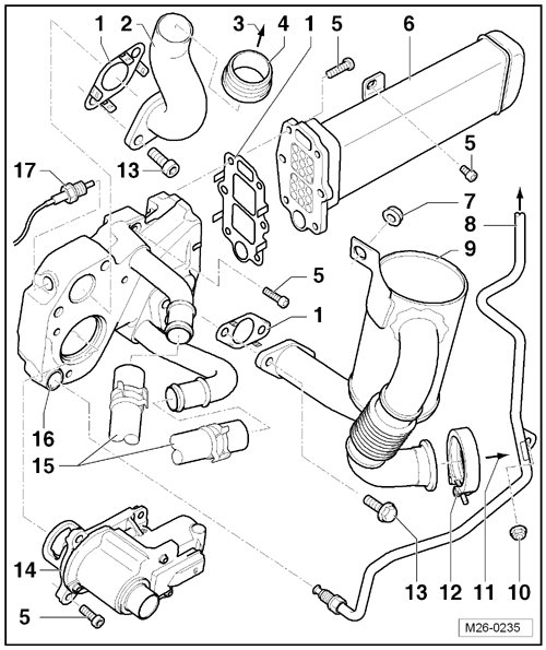 • EGR Potentiometer -G212- and EGR Vacuum Regulator Solenoid Valve -N18- are integrated with EGR Two-Way Valve -N161-