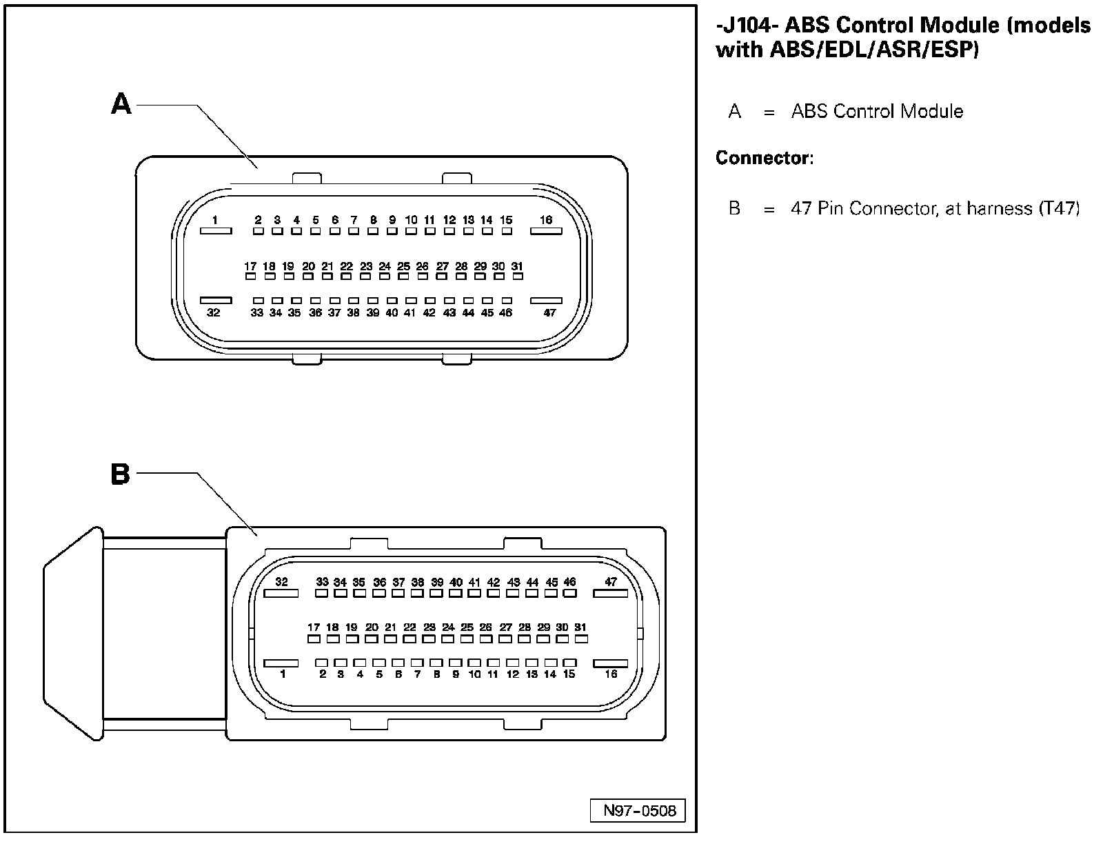 ABS Control Module (Models With ABS/EDL/ASR/ESP) J104: