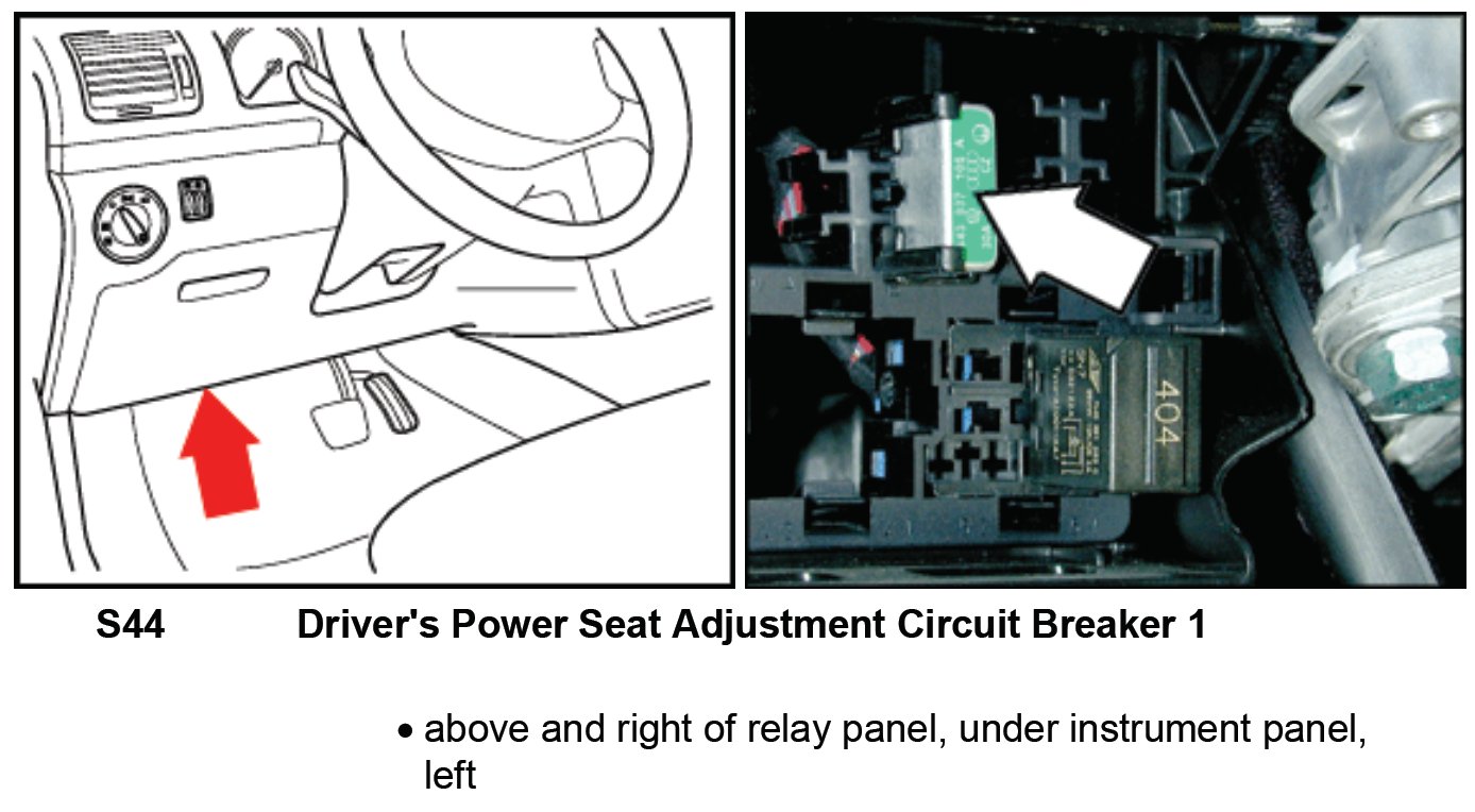 Driver's Power Seat Adjustment Circuit Breaker 1 S44: