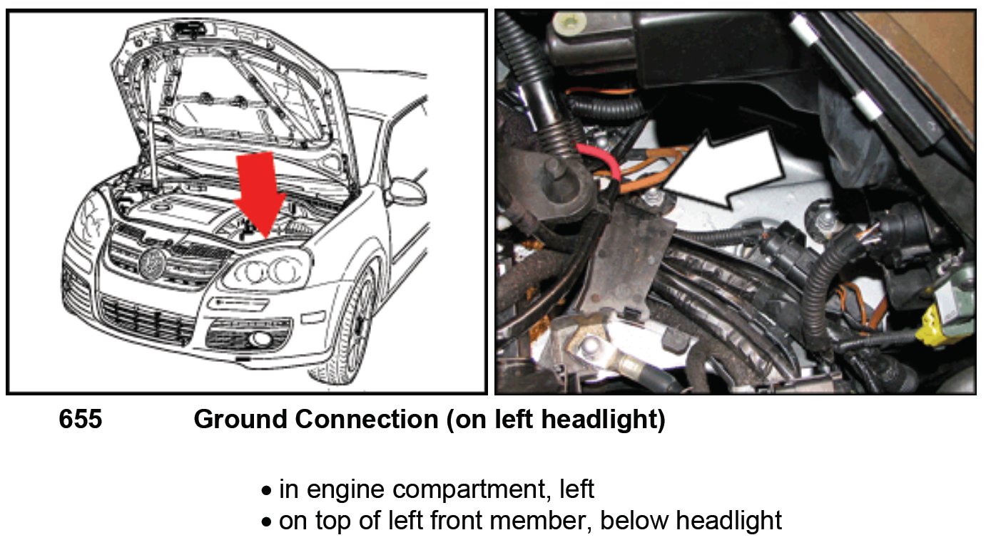 Ground Connection (On Left Headlight) 655: