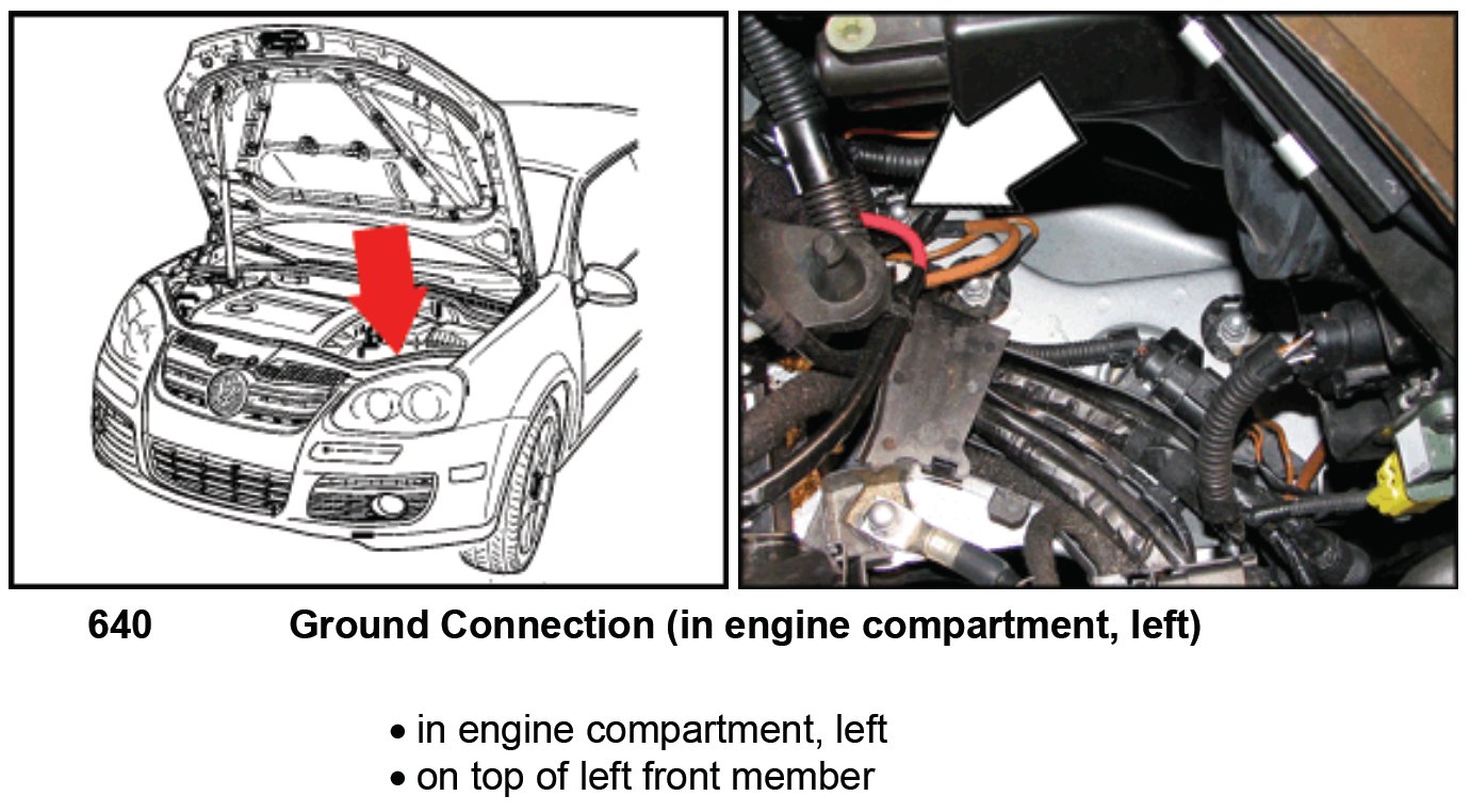Ground Connection (In Engine Compartment, Left) 640: