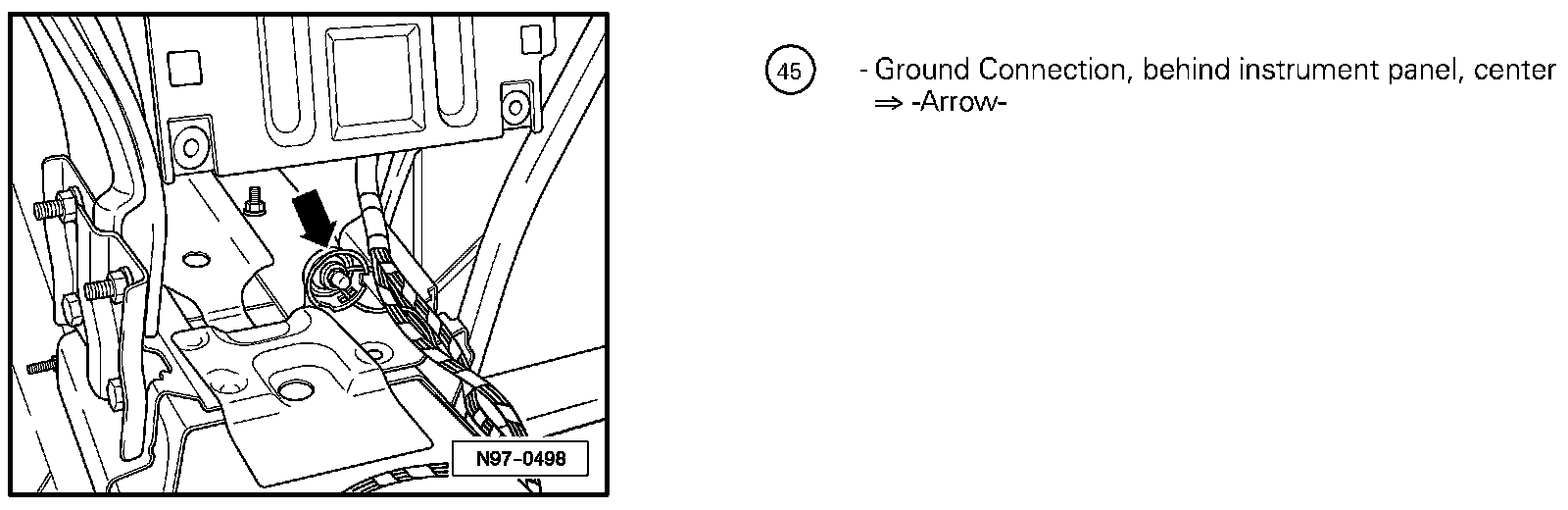 Ground Connection, Behind Instrument Panel, Center 45: