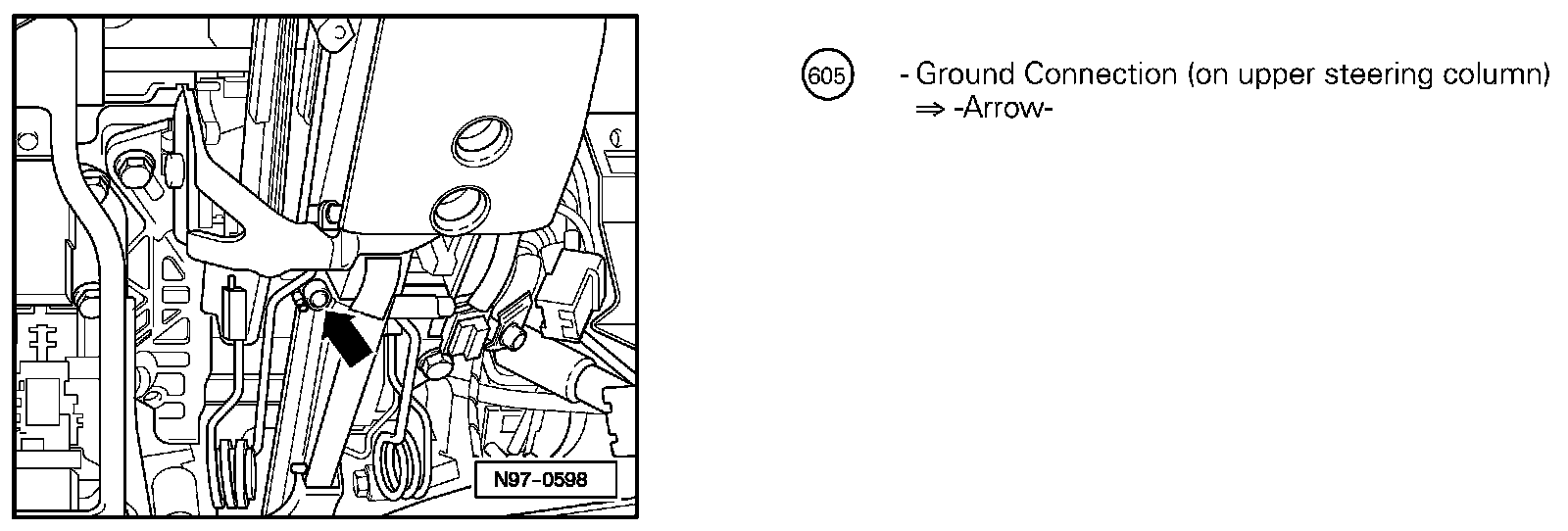 Ground Connection (On Upper Steering Column) 605: