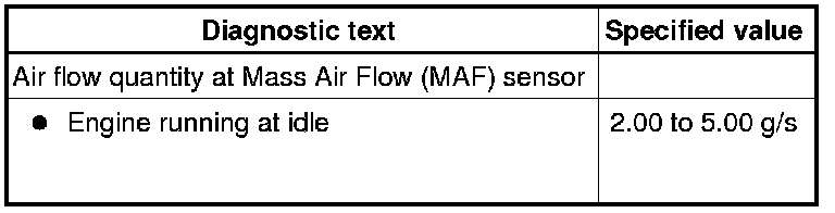 - Using the scan tool, Check the air flow quantity of the Mass Air Flow (MAF) Sensor (G70) at idle: