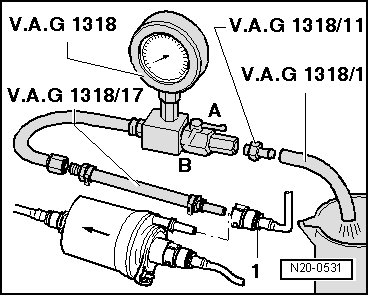 - Disconnect the supply hose - 1 - from the fuel filter input.