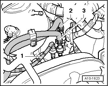 - Disconnect the fuel supply line - 2 - and catch escaping fuel using a rag.
