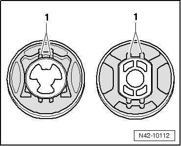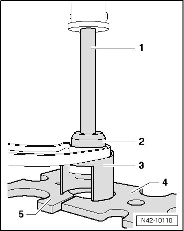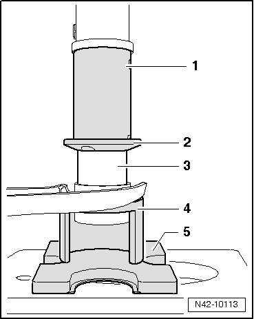 There are 2 different bonded rubber bushings. For both, the marked line must lie between raised points - 1 - after pressing in.