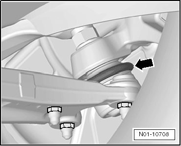 - Check ball joint boots - arrow - for leaks and damage.
