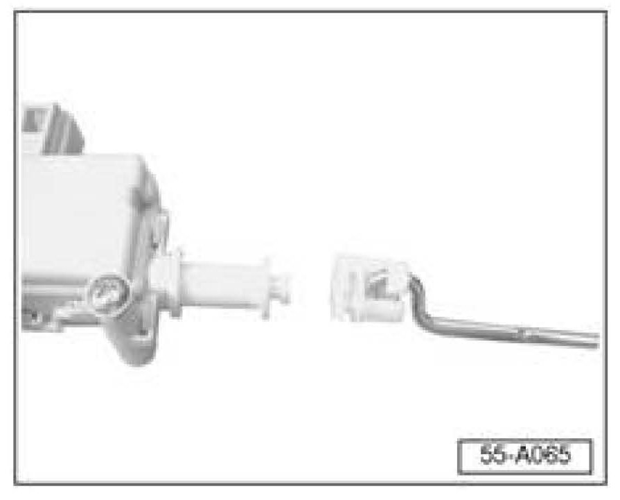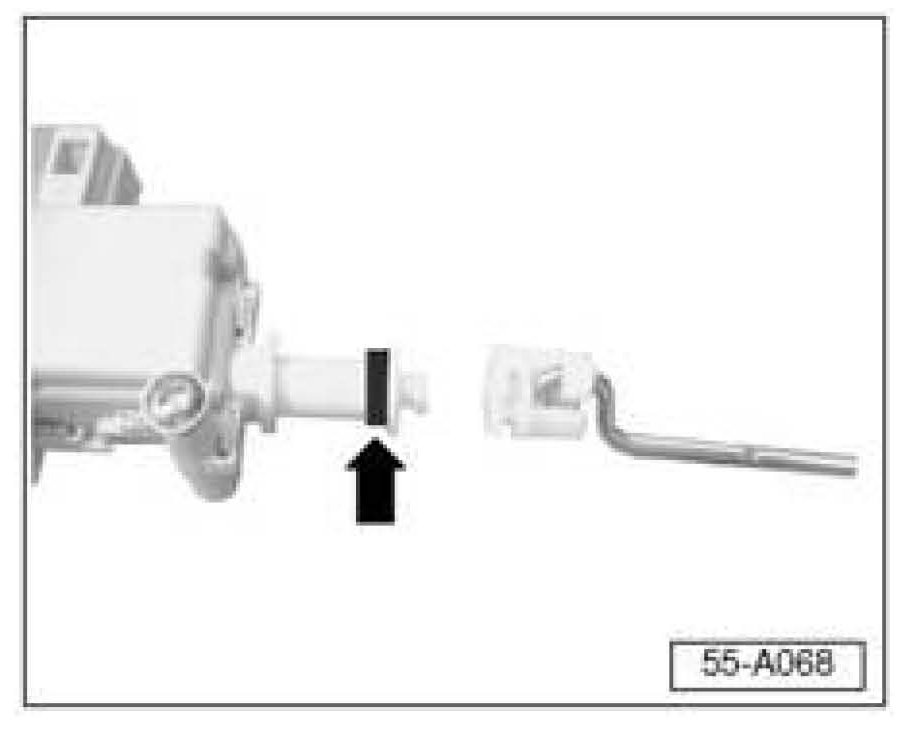 ^ Install release motor and check operation (see Repair Manual Body Exterior Group 55 - Hood, Lids, Fuel Tank Lid Unlock Motor -V155-, removing and installing).