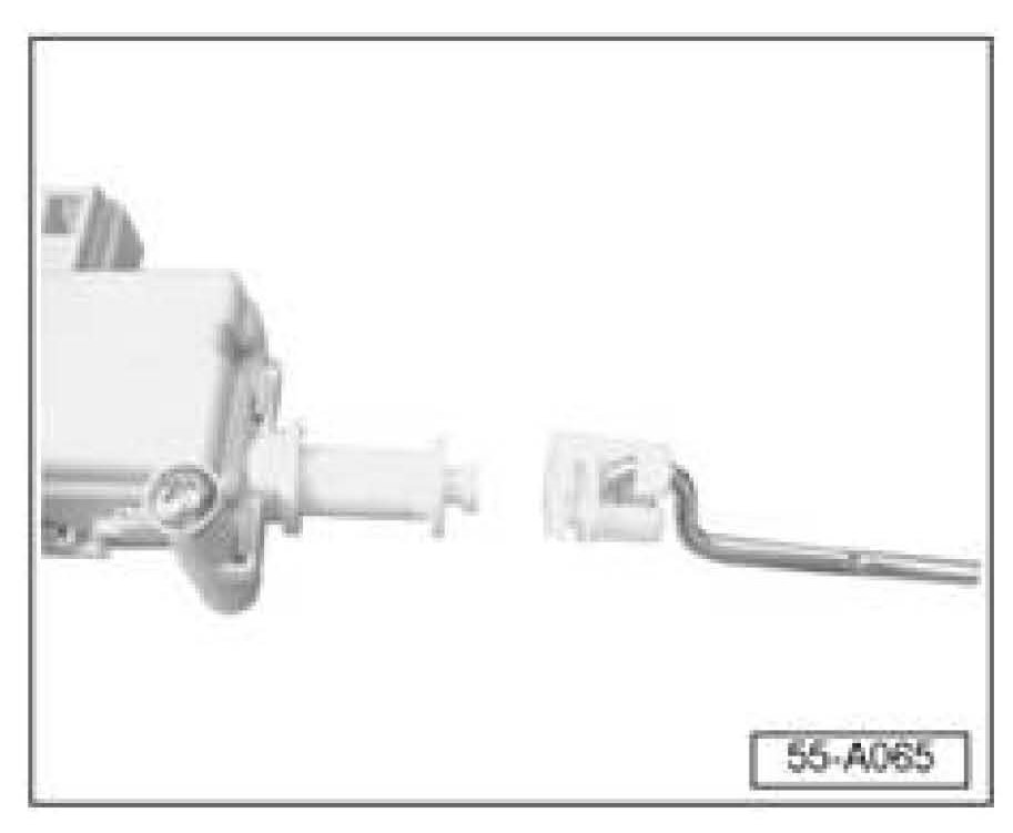 ^ Install release motor and check operation (see Repair Manual Body Exterior Group 55 - Hood, Lids, Fuel Tank Lid Unlock Motor -V155-, removing and installing).