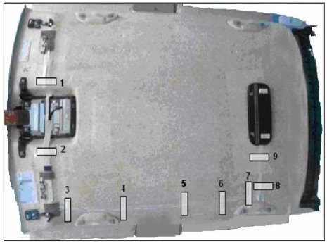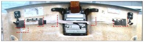 Before removing the harness from headliner, it is necessary to mark the harness to headliner mounting locations (see picture). Once located, carefully separate harness from headliner in order to avoid headliner damaged.