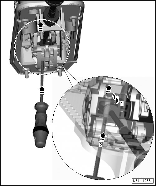 - Push the bolt upward at the same time with a screwdriver - arrow 2 -.