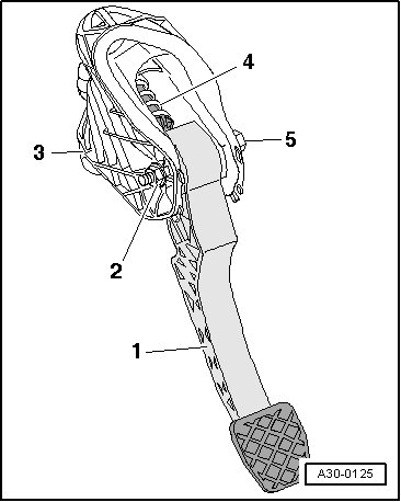 - Remove the nut - 2 - and the bolt - 5 -, then remove the clutch pedal - 1 - from the bracket - 3 -.