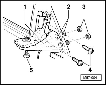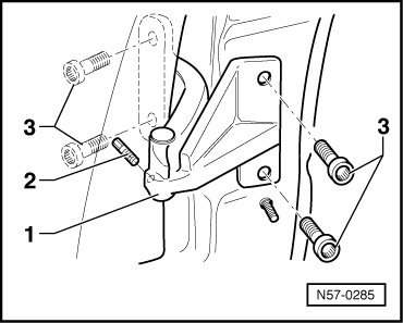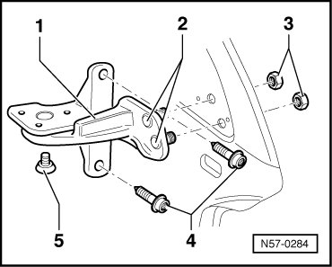 • Always replace bolts - 4 - at upper hinge and - 3 - at lower hinge when loosened. Replace corresponding threaded pins - 2 - on upper door hinge when loosening nuts - 3 -.
