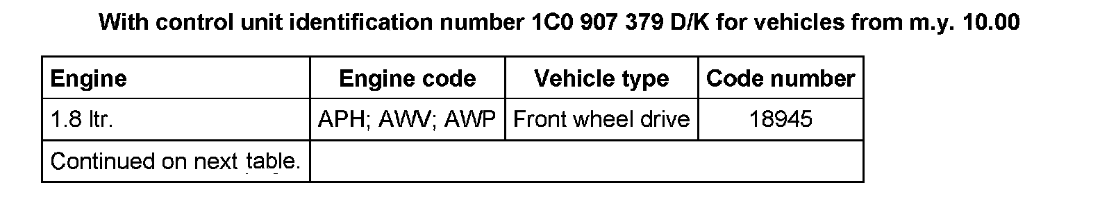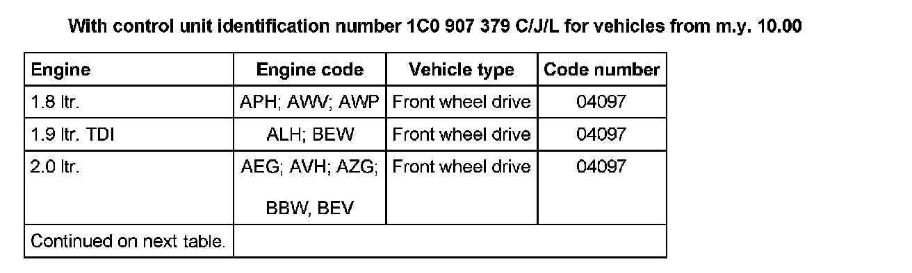 With control unit identification number 1C0 907 379 D/K for vehicles from m.y. 10.00: