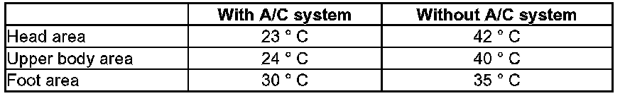 - Mid-size car temperatures after short traveling time (example: ambient temperature 30 degrees C in the shade and vehicle exposed to sunlight).