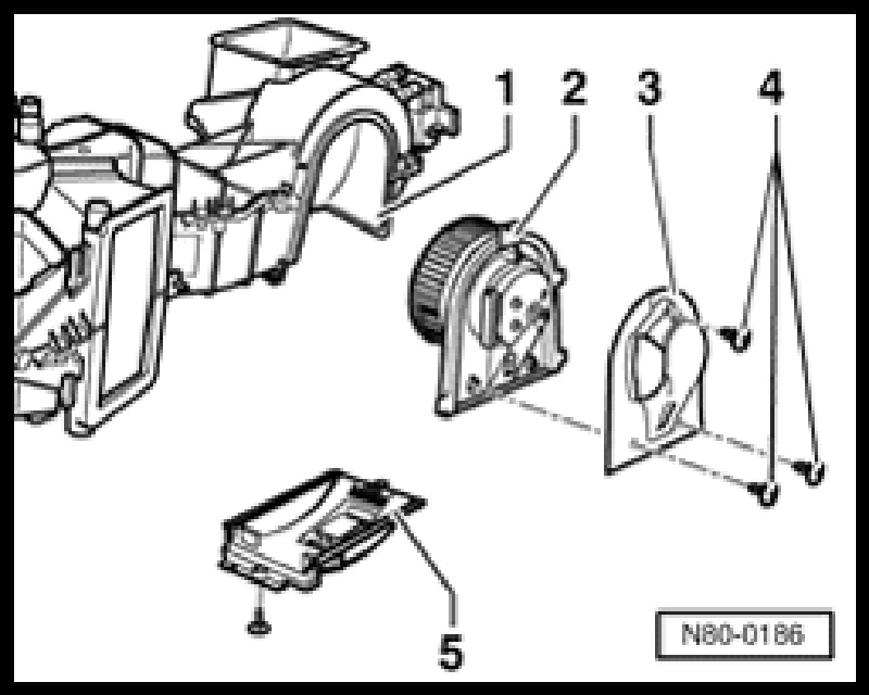 - Remove fresh air blower series resistor -5-.