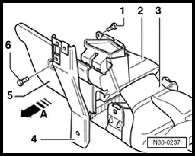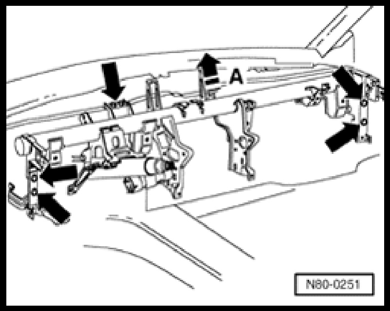 - Pull connecting piece out towards the drivers side footwell - arrow A -.